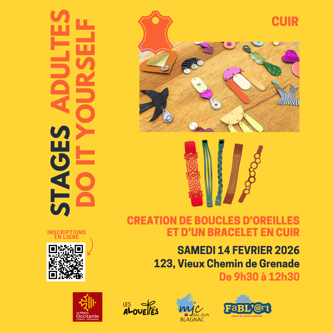 - Samedi 14/02 Stage Création de Boucles d'Oreilles et d'un Bracelet en Cuir